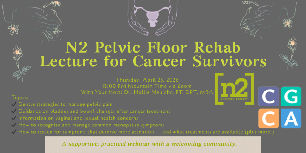 We have exciting news to share: the Colorado Gynecologic Cancer Alliance (CGCA) has invited N2 Physical Therapy to serve as a featured educator for their community โ and this is just the beginning. Dr. Hollie Neujahr will be kicking things off with a free, live webinar on April 23rd, and we couldn’t be more excited to bring this resource directly to gynecologic cancer survivors across Colorado and beyond.